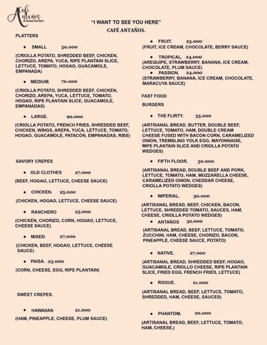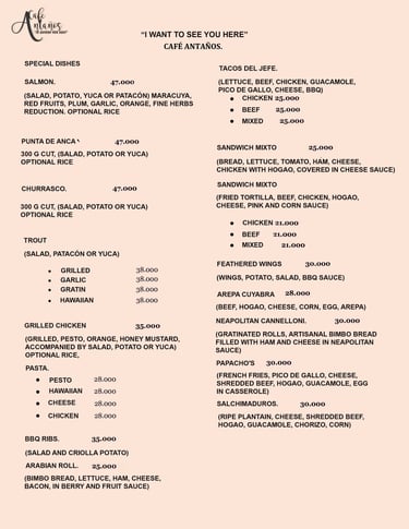 At Café Antaños Te Quiero Ver, we don't just serve dishes; we serve memories, tradition, and a whole lot of heart. Each preparation is designed to connect you with the flavors of the countryside, with handmade items, with a taste for the authentic.