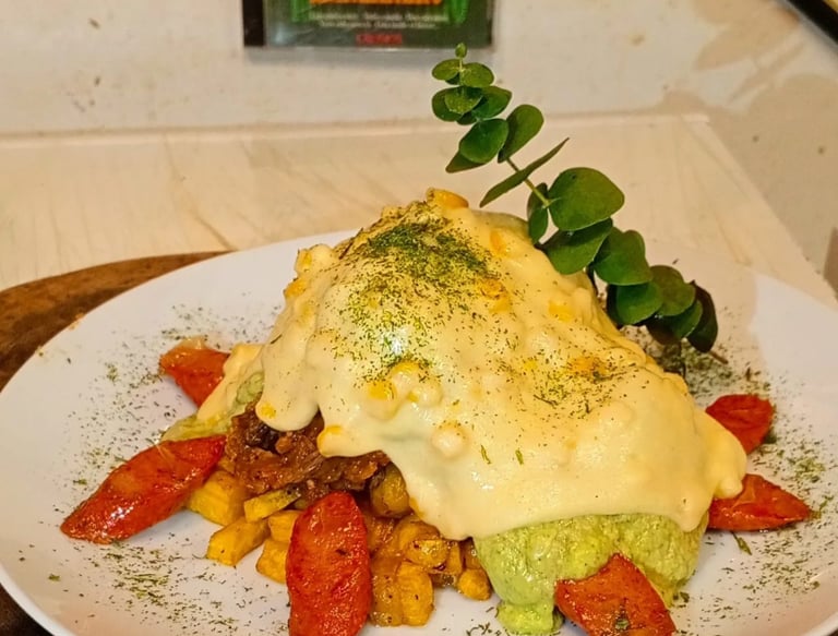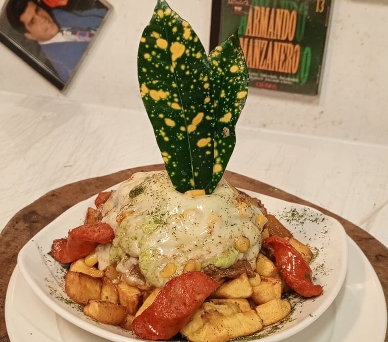 We offer pasta with pesto, cheese, or chicken, tacos del jefe with pico de gallo and guacamole, crispy Mexican flautas, BBQ ribs with creole potatoes, and an Arabic roll that masterfully blends sweet and savory. Our Neapolitan cannelloni and papacho are a must-try for lovers of Creole flavor.